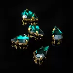 Стразы в цапах 6х10 мм изумрудный в золоте / 1 шт