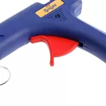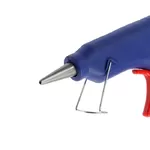 Модель оснащена функцией «антикапля», которая обеспечит защитой от протекания клея во время нагрева пистолета. Благодаря встроенной откидной подставке инструмент можно хранить в вертикальном положении.
