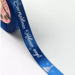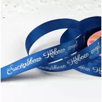 Лента атласная с рисунком 15 мм "Счастливого Нового года" синий/белый / 1 м