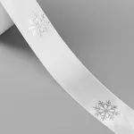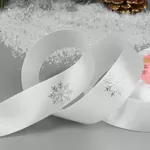 Лента атласная с рисунком 25 мм "Снежинки" белый/серебро / 1 м