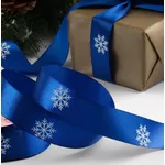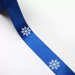 Лента атласная с рисунком 25 мм "Снежинки" синий/белый / 1 м