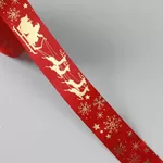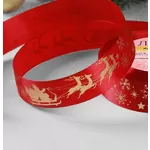 Лента атласная с рисунком 25 мм (тиснение) "Олени в упряжке" красный/золото / 1 м