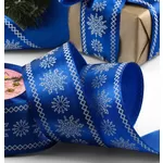 Лента атласная с рисунком 50 мм "Сенжинки" синий/белый / 1 м